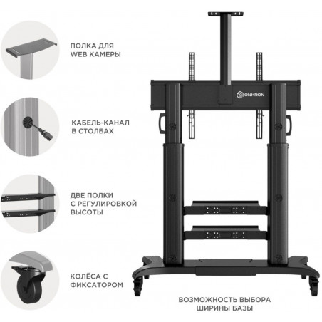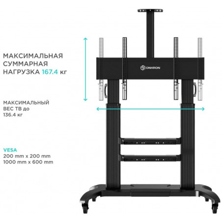 - Представляем Вашему вниманию стойку с уникальной конструкцией ONKRON TS2811. Уникальность её в том, что данная мобильная стойка подходит не только для телевизоров и интерактивных досок, диагональю от 60" до 100" и весом не более 136,4 кг, но и в том, что