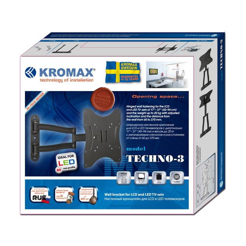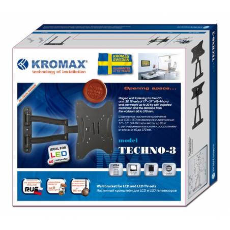Кронштейн для телевизора Kromax TECHNO-3 серый 15"-40" макс.20кг настенный поворотно-выдвижной и наклонный