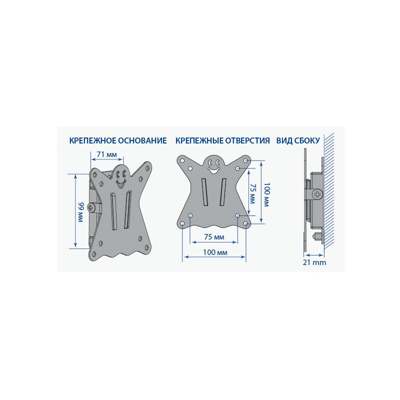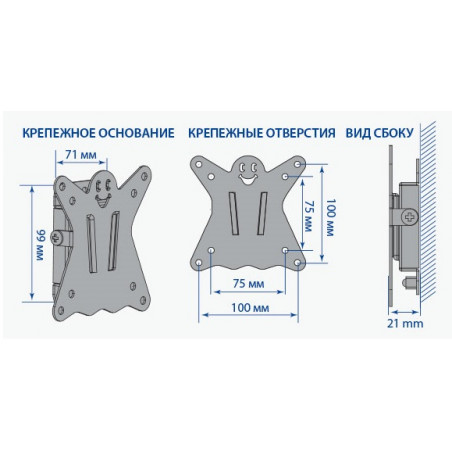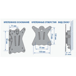 - Фиксированный кронштейн для крепления к стене телевизоров и мониторов с не большой диагональю экрана. Высококачественная стальная конструкция обеспечит надежное и безопасное использование. Легко снимающаяся монтажная пластина облегчит процесс уборки.
