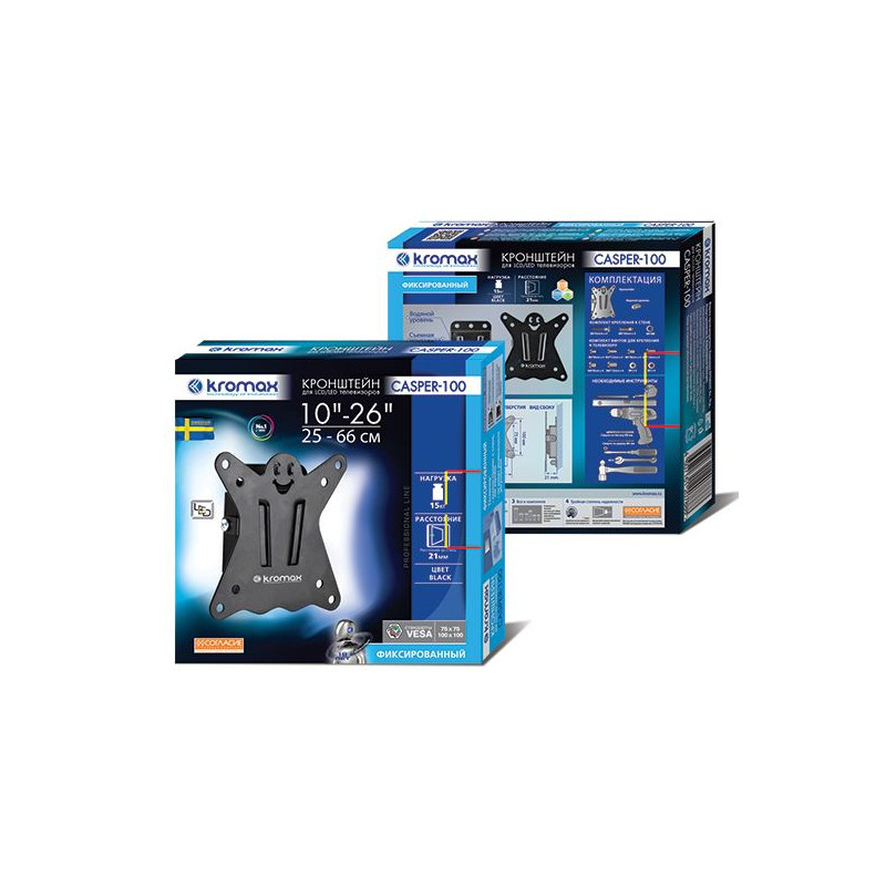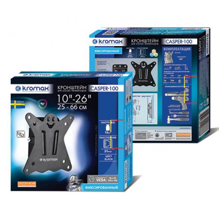 Кронштейн для телевизора Kromax CASPER-100 черный 10"-32" макс.25кг настенный фиксированный