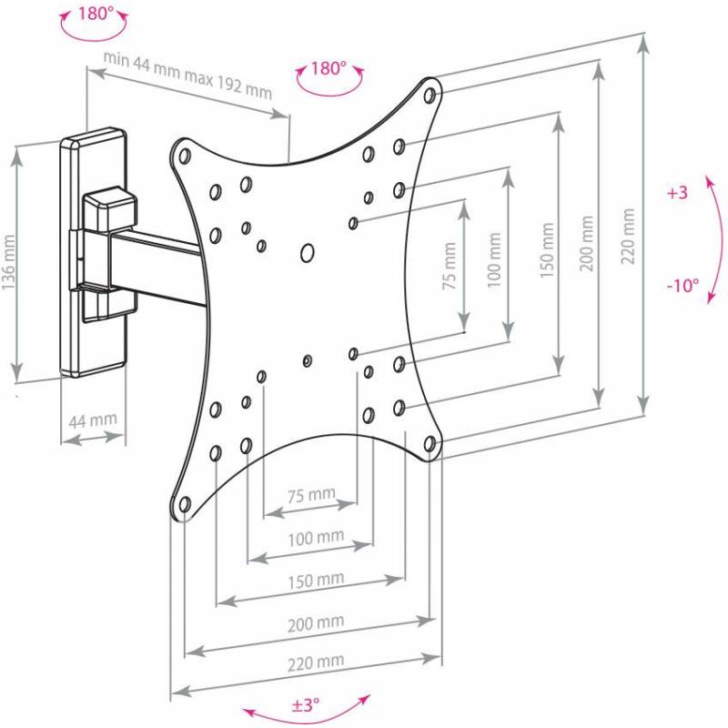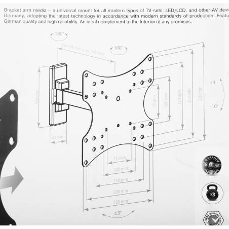 Кронштейн для телевизора Arm Media MARS-3 черный 20"-43" макс.20кг настенный поворот и наклон