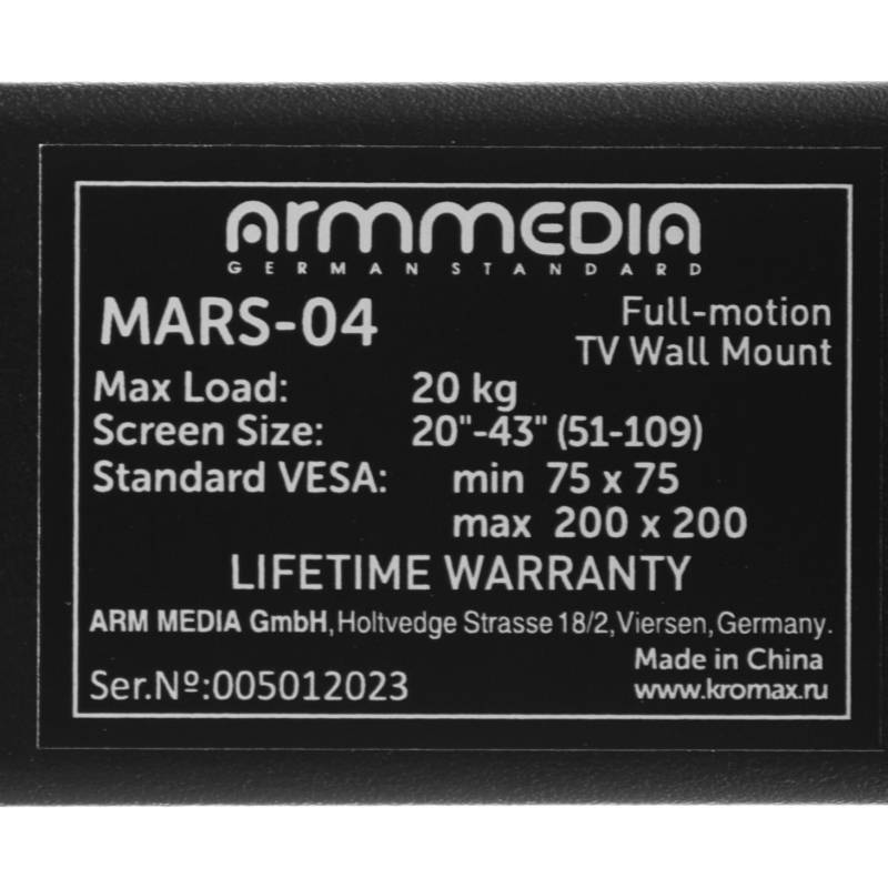 Кронштейн для телевизора Arm Media MARS-4 черный 20"-43" макс.20кг настенный поворот и наклон