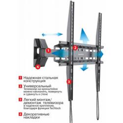 - Кронштейн LCD-414, для LED/LCD телевизоров 26"-55", max 35 кг, настенный, наклон +3 -10, поворот 180 градусов, от стены 84-443 мм, max VESA 400x400 мм