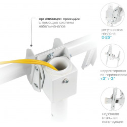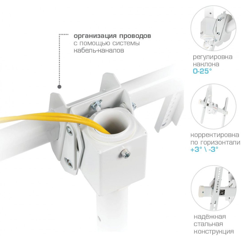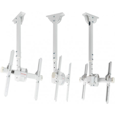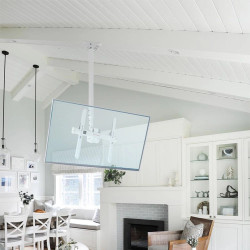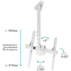 - Потолочный кронштейн для LCD/LED телевизоров размером от 26 до 65 дюймов с максимальным весом до 50 кг. с возможностью крепления на наклонный потолок. Надежная стальная конструкция. Регулировка наклона 0-25 и углом поворота ±180 градусов. Максимальные кре