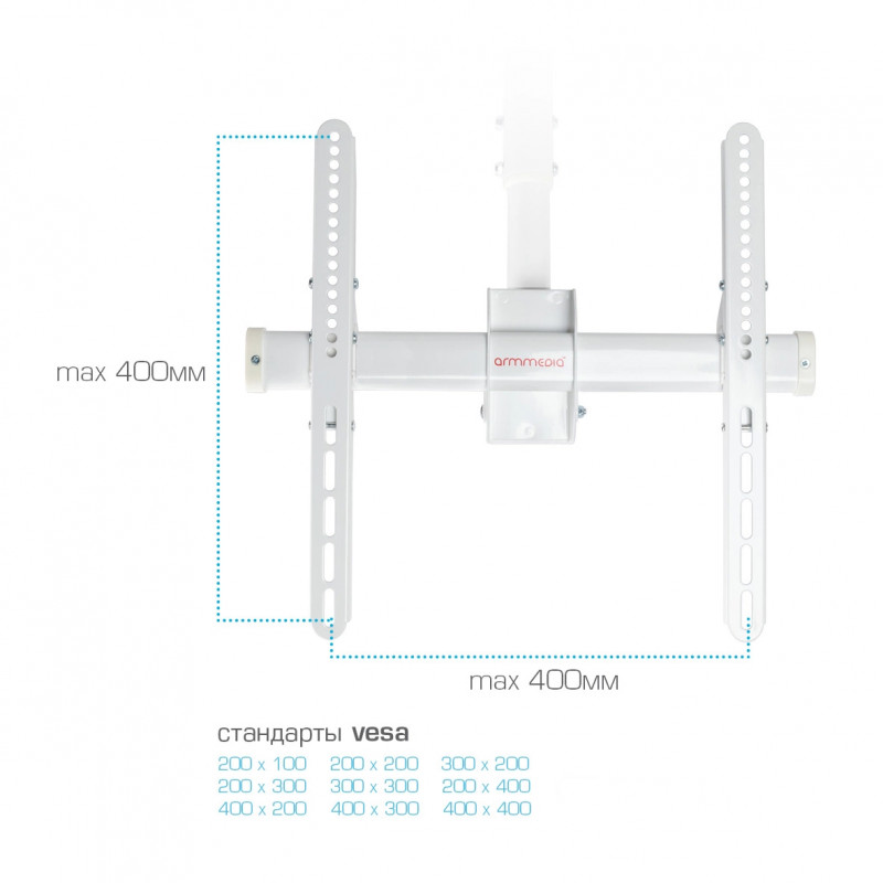 Кронштейн для телевизора Arm Media LCD-1800 белый 26"-65" макс.50кг потолочный поворот и наклон