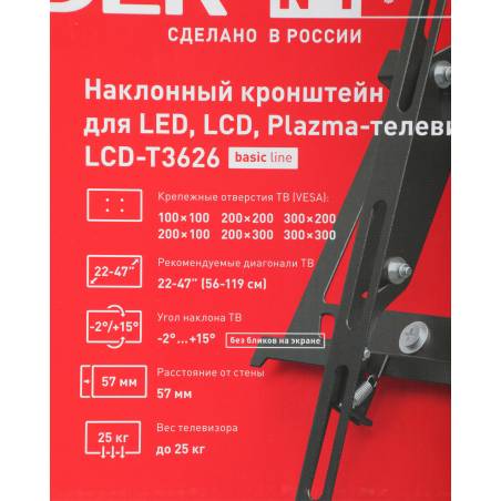 Кронштейн для телевизора Holder T3626-B черный 22"-47" макс.25кг настенный наклон