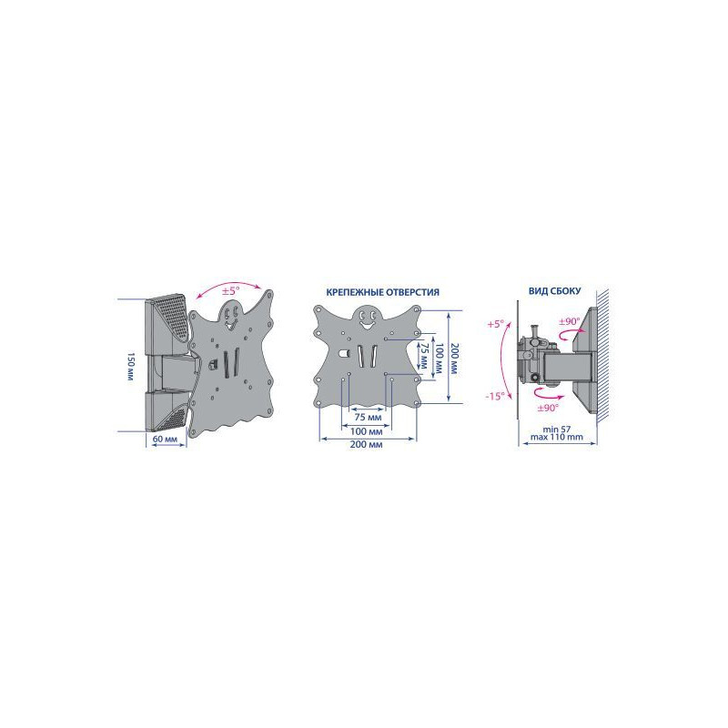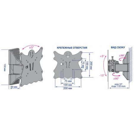 Кронштейн для телевизора Kromax Casper-202 черный 20"-43" макс.30кг настенный поворот и наклон