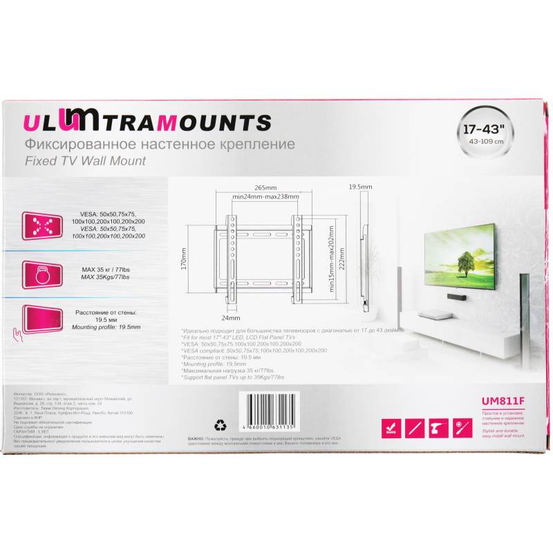 Кронштейн для телевизора Ultramounts UM811F черный 17"-43" макс.35кг настенный фиксированный