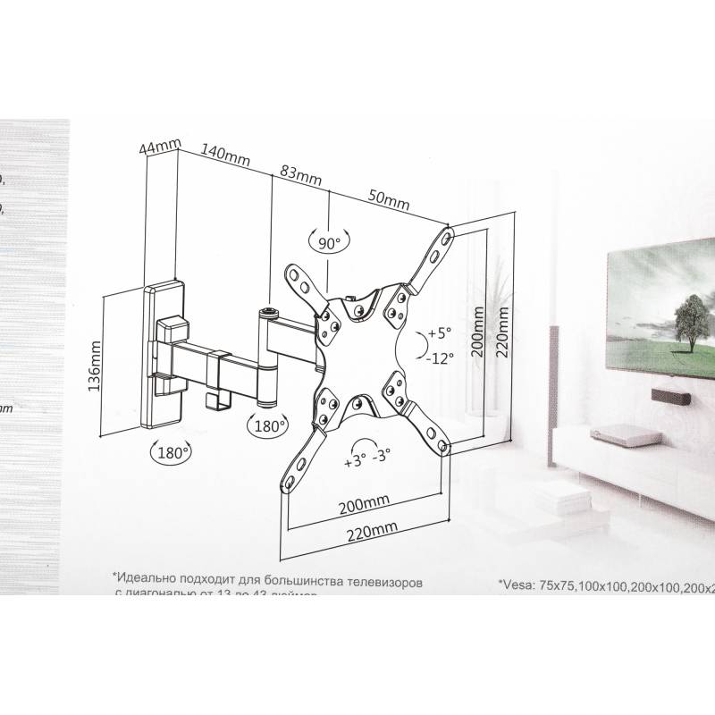 Кронштейн для телевизора Ultramounts UM866W белый 13"-42" макс.20кг настенный поворот и наклон