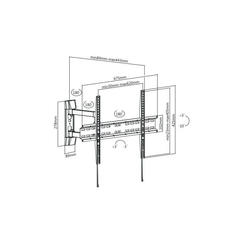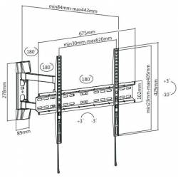 - Для использования с телевизорами диагональю 37"-70", весом до 35 кг. Возможен наклон до 10 градусов. подъем до 3 градусов. Поворот влево и вправо на 90 градусов. Расстояние телевизора от стены 84-443 мм. VESA 200x200, 300x300, 400x400, 600x400