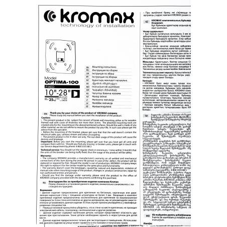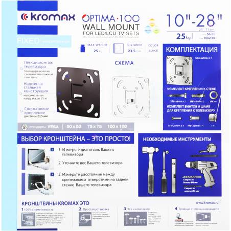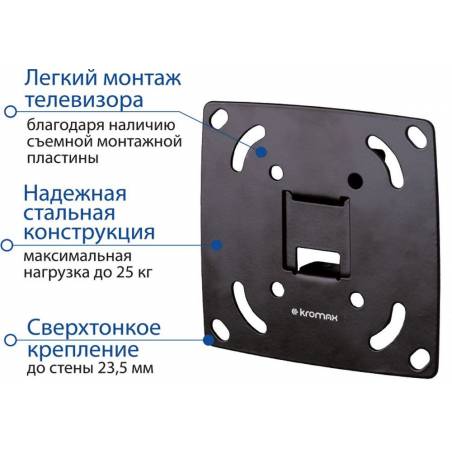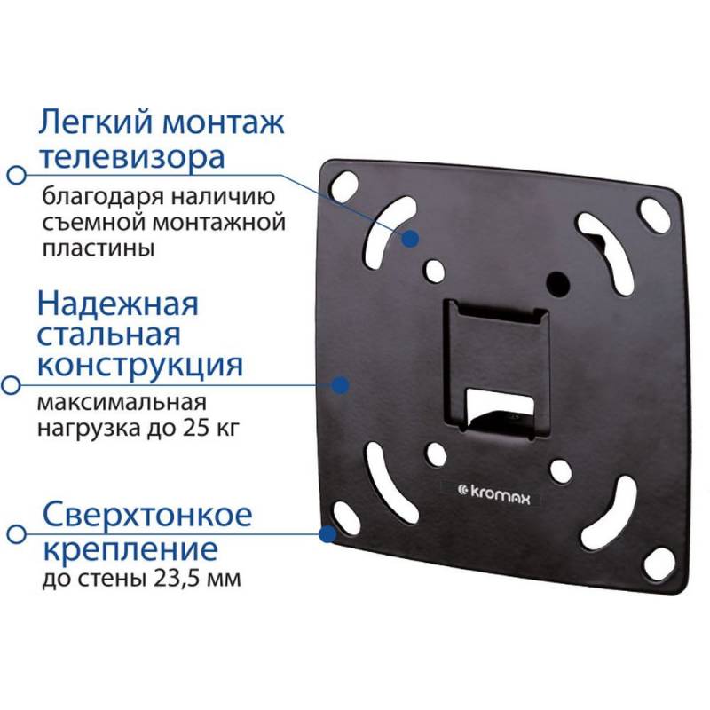 Кронштейн для телевизора Kromax OPTIMA-100 черный 10"-28" макс.25кг настенный фиксированный