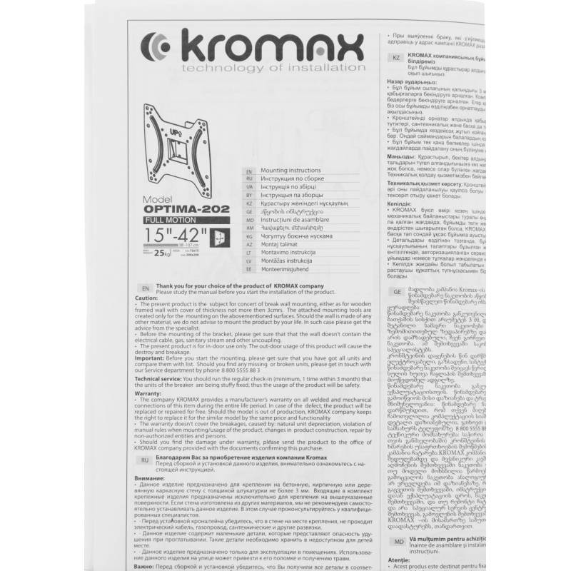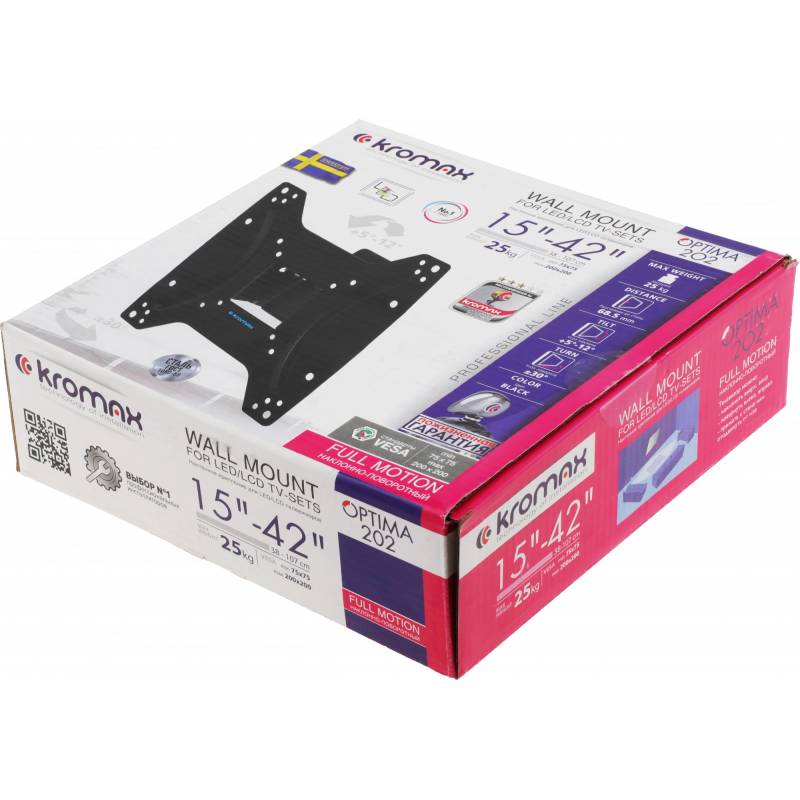 Кронштейн для телевизора Kromax OPTIMA-202 черный 15"-42" макс.25кг настенный наклон