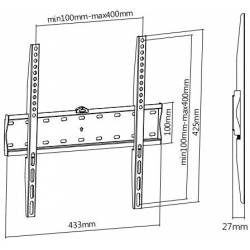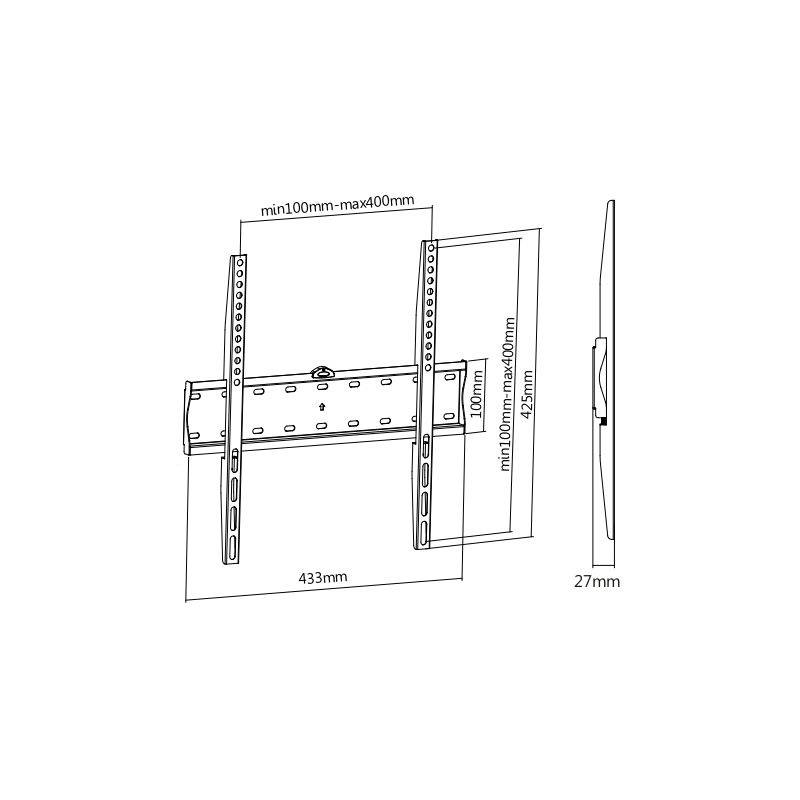 - UM813F - для использования с телевизорами диагональю 32"-55", весом до 40 кг. Расстояние телевизора от стены 27 мм. VESA 200х200, 400х200, 300х300, 400х400