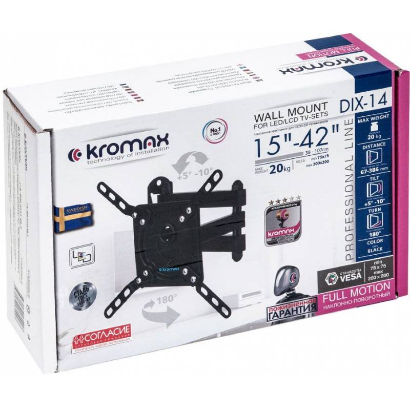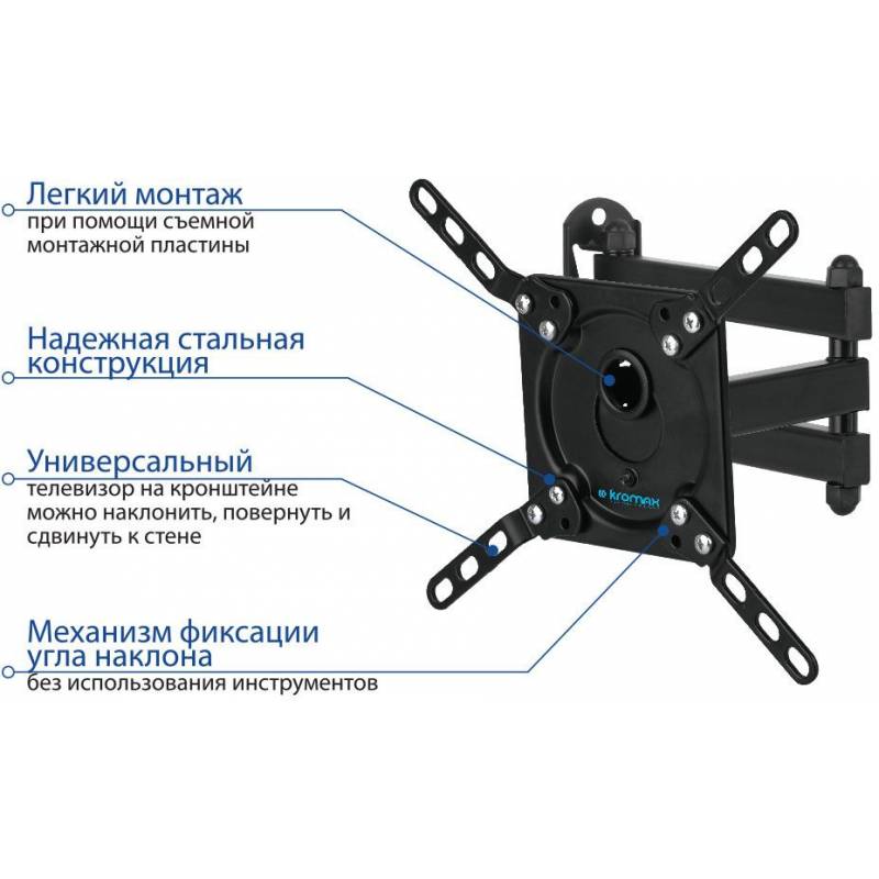 Кронштейн для телевизора Kromax DIX-14 черный 15"-42" макс.20кг настенный поворотно-выдвижной и наклонный