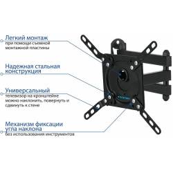 - Легкий монтаж при помощи съемной монтажной пластины, надежная стальная конструкция, механизм фиксации угла наклона - без использования инструментов.