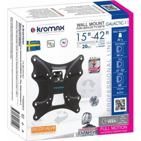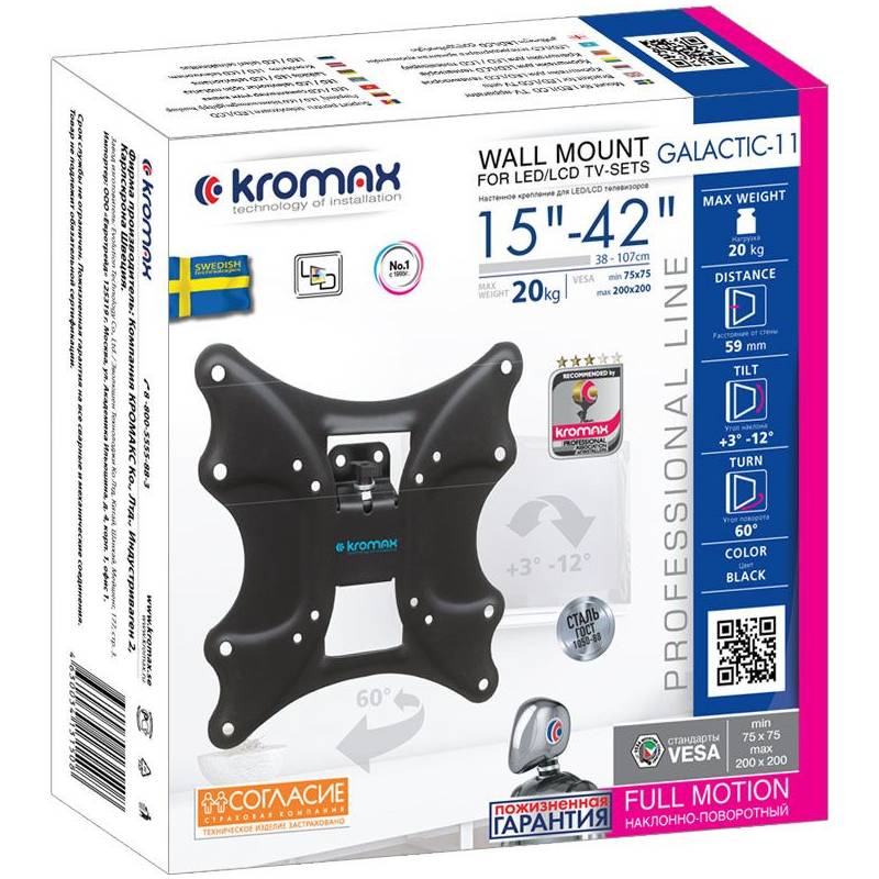 Кронштейн для телевизора Kromax GALACTIC-11 черный 15"-42" макс.20кг настенный поворот и наклон