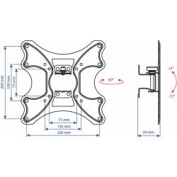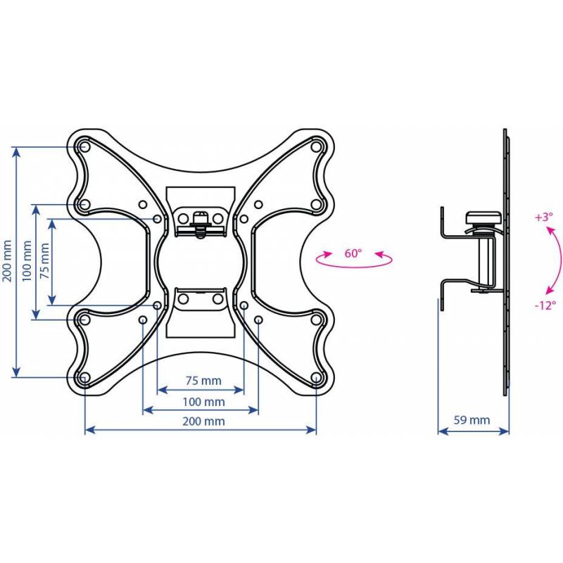 - Легкий монтаж при помощи съемной монтажной пластины. Надежная стальная конструкция. Универсальный телевизор на кронштейне можно наклонить, повернуть и сдвинуть к стене. Регулировка угла наклона без использования инструментов.
