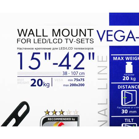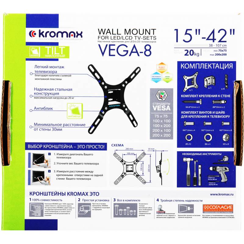 Кронштейн для телевизора Kromax VEGA-8 черный 15"-42" макс.15кг настенный наклон