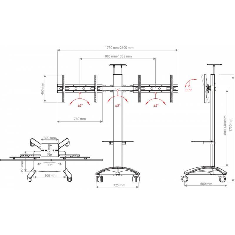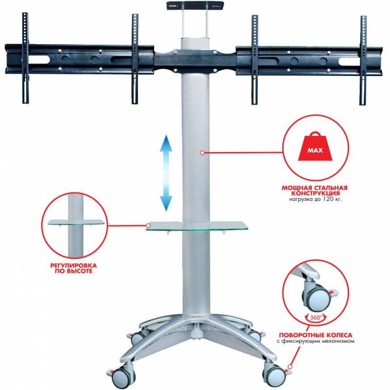 Подставка для телевизора Arm Media PT-STAND-15 серебристый 26"-55" макс.120кг напольный наклон