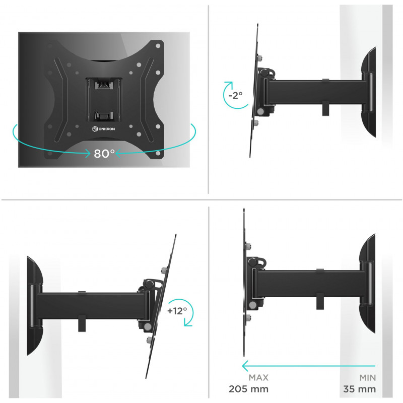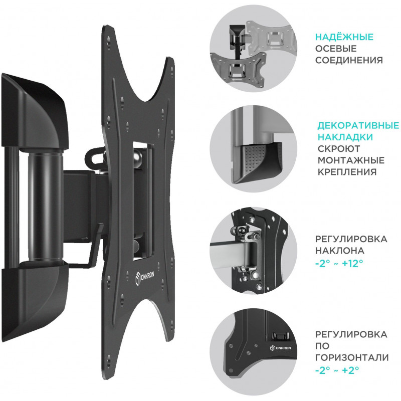 Кронштейн для телевизора Onkron M2S черный 17"-43" макс.35кг настенный поворот и наклон