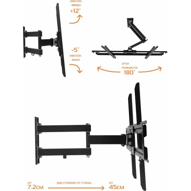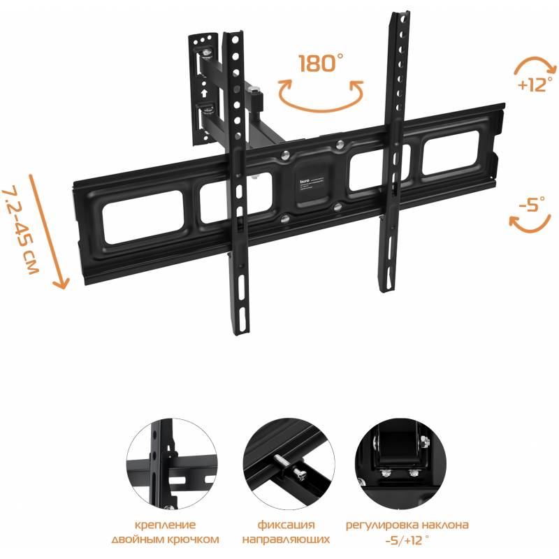 Кронштейн для телевизора Buro MF2 черный 32"-70" макс.35кг настенный поворотно-выдвижной и наклонный
