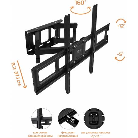 Кронштейн для телевизора Buro MF3 черный 32"-70" макс.40кг настенный поворотно-выдвижной и наклонный