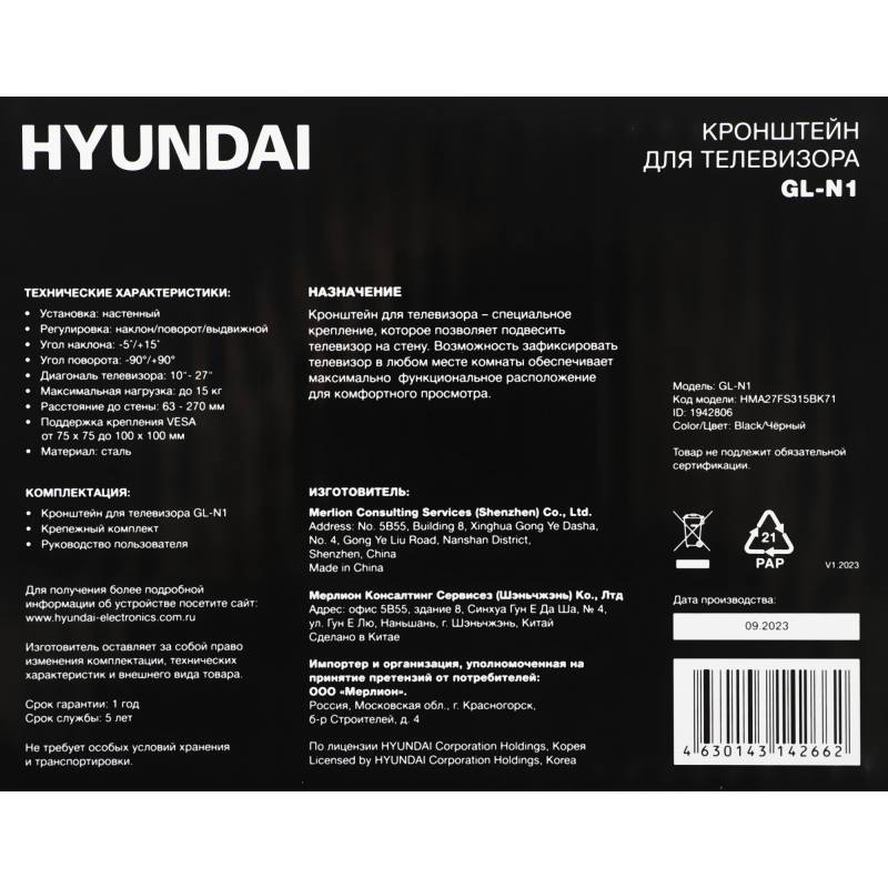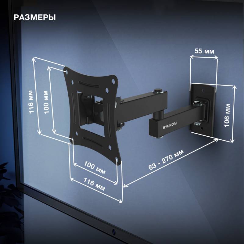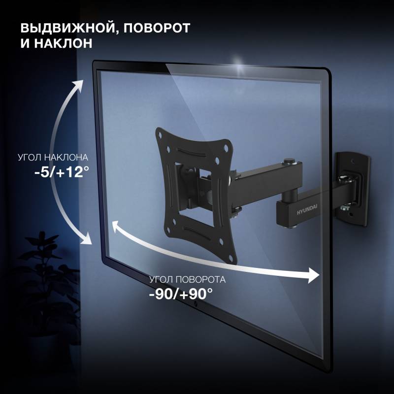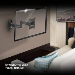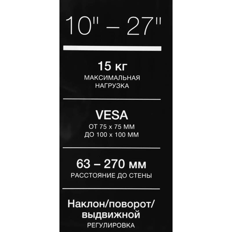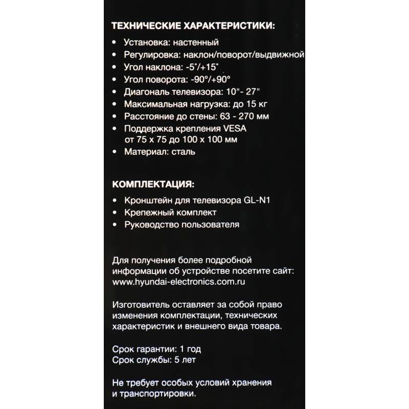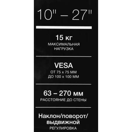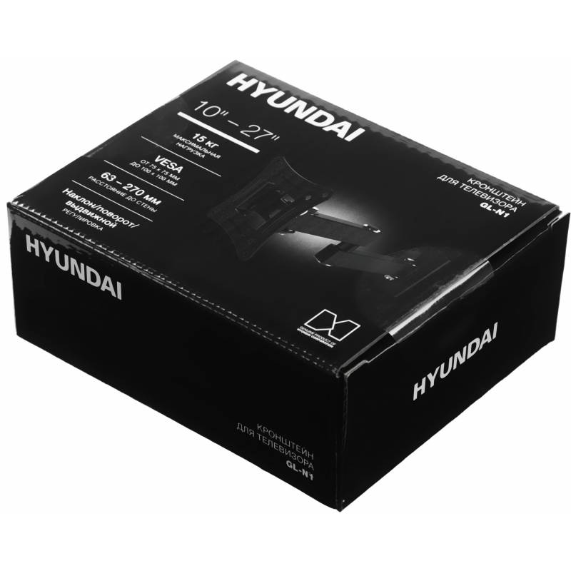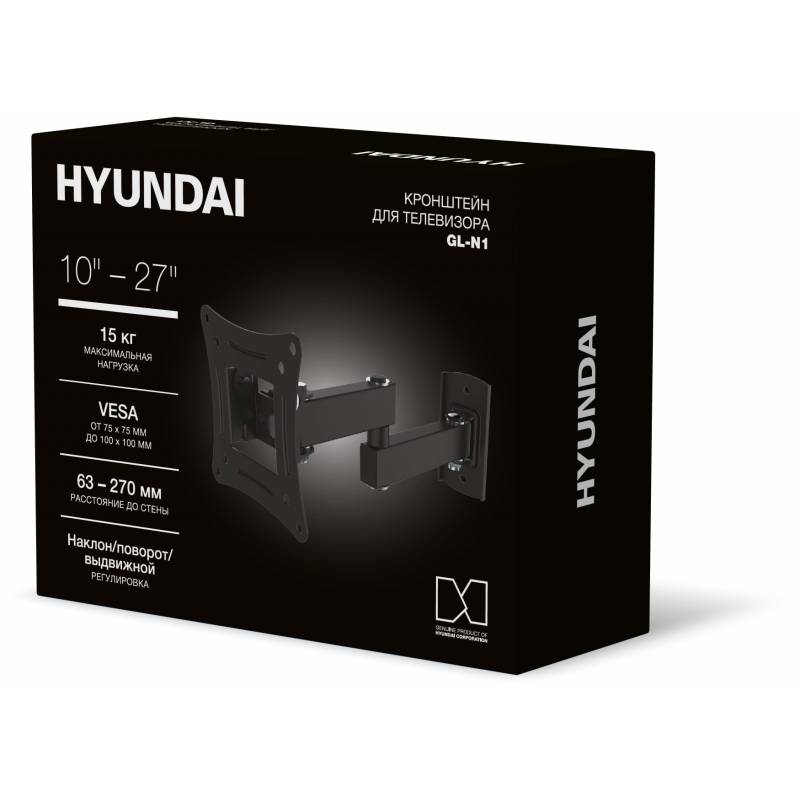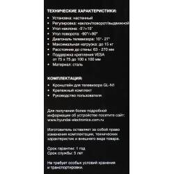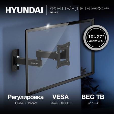 Кронштейн для телевизора Hyundai GL-N1 черный 10"-27" макс.15кг настенный поворотно-выдвижной и наклонный