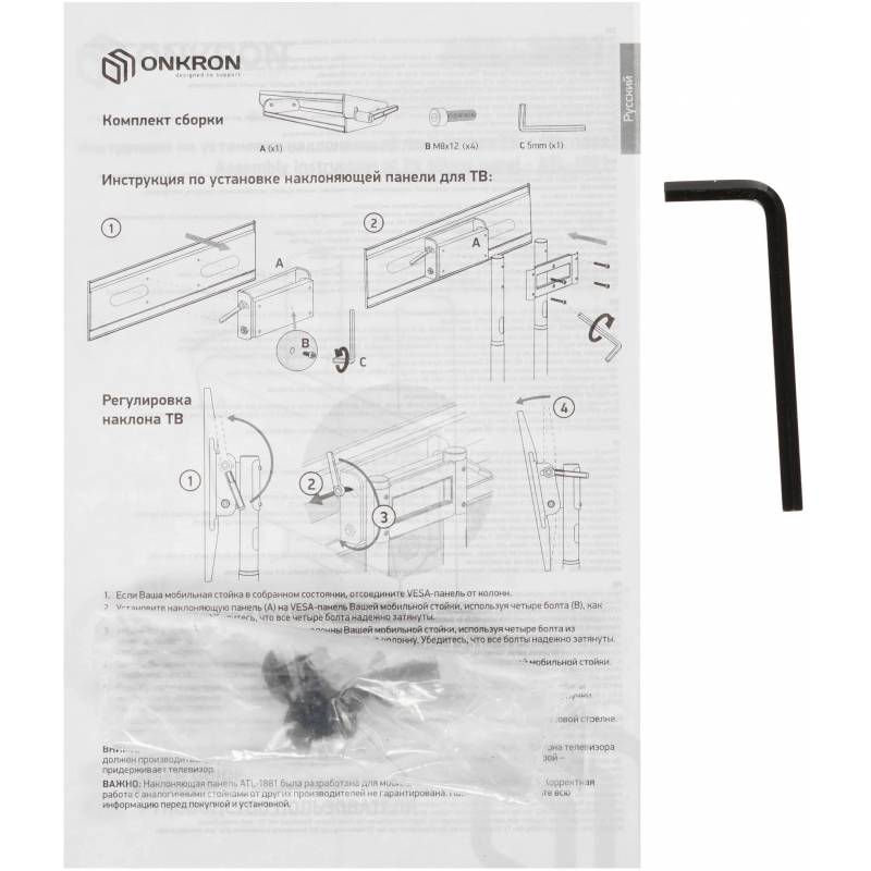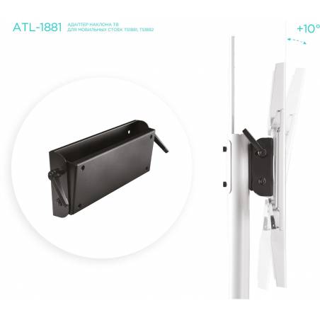 - Адаптер наклона ONKRON ATL-1881 подходит для мобильных стоек TS1881 White, TS1881 Black, TS1892 Black. Данный адаптер позволяет с лёгкостью регулировать угол наклона вашего ТВ для обеспечения максимально комфортного просмотра.