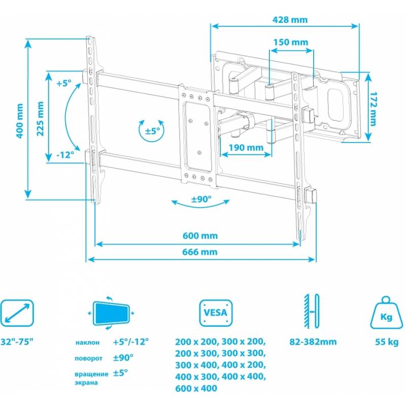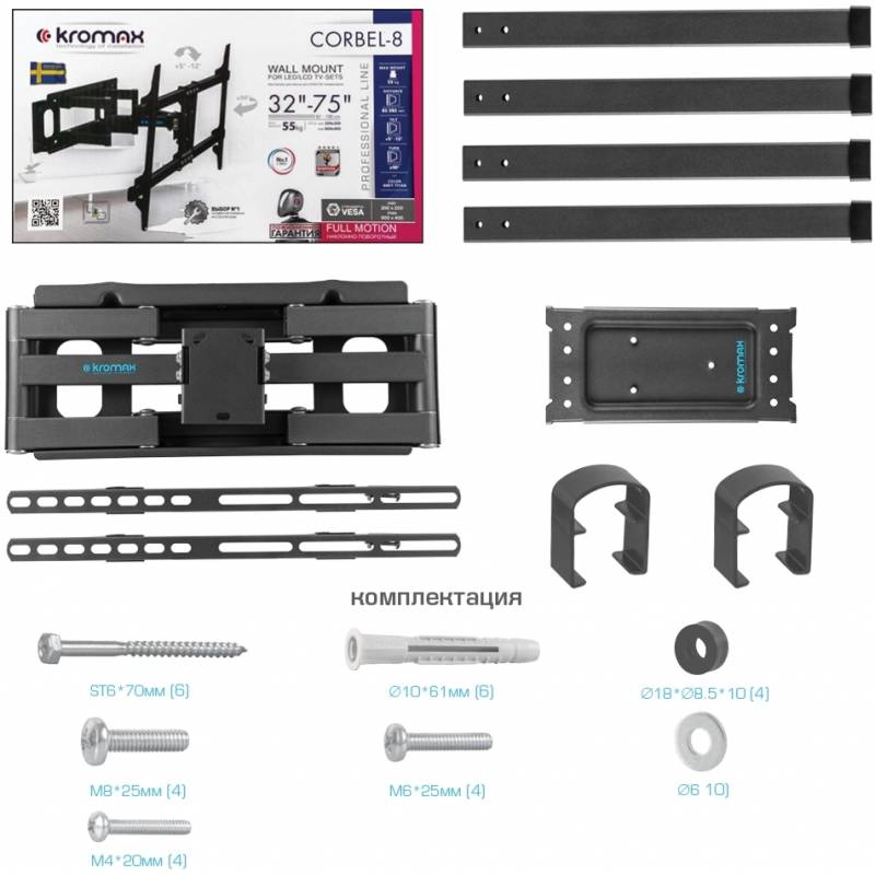 Кронштейн для телевизора Kromax CORBEL-8 титан 32"-75" макс.55кг настенный поворот и наклон
