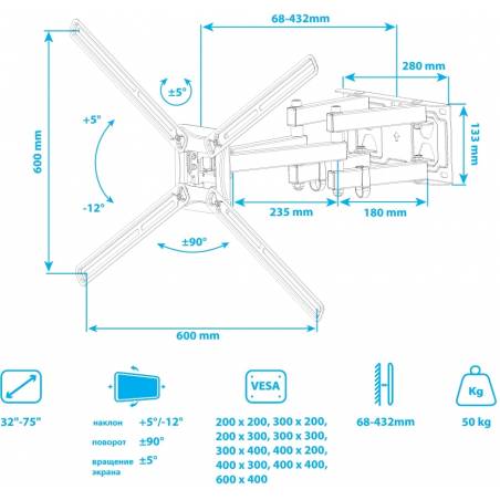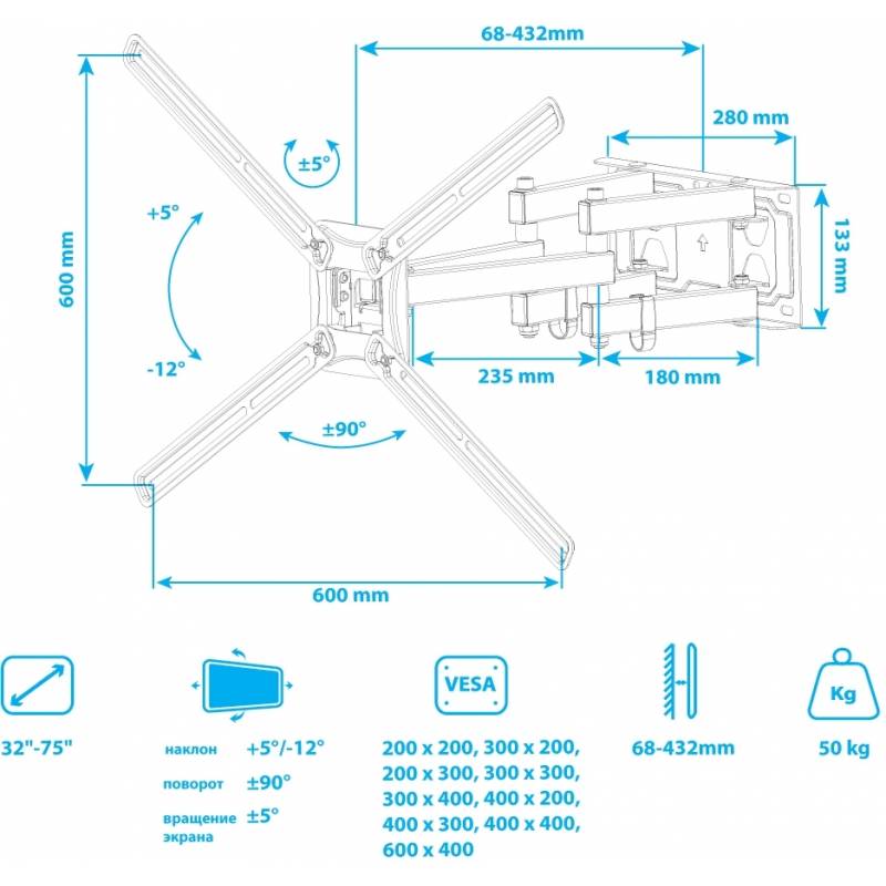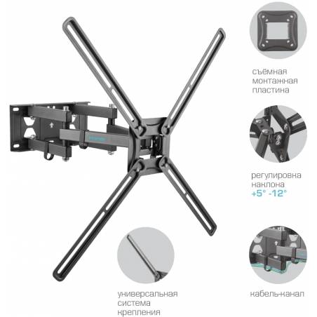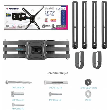 Кронштейн для телевизора Kromax CORBEL-9 титан 32"-75" макс.55кг настенный поворот и наклон