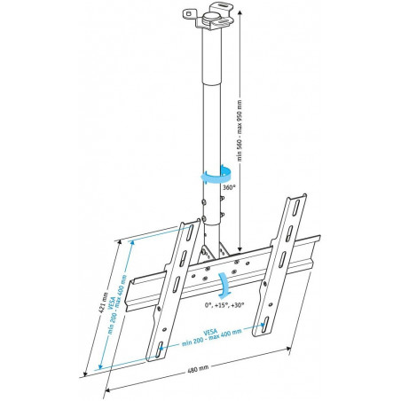 Кронштейн для телевизора Holder PR-101-B черный 32"-65" макс.60кг потолочный фиксированный