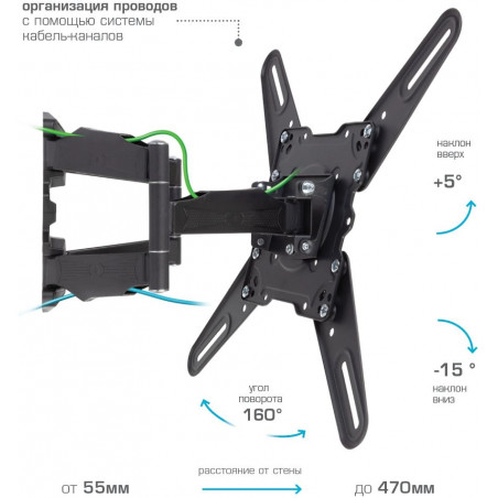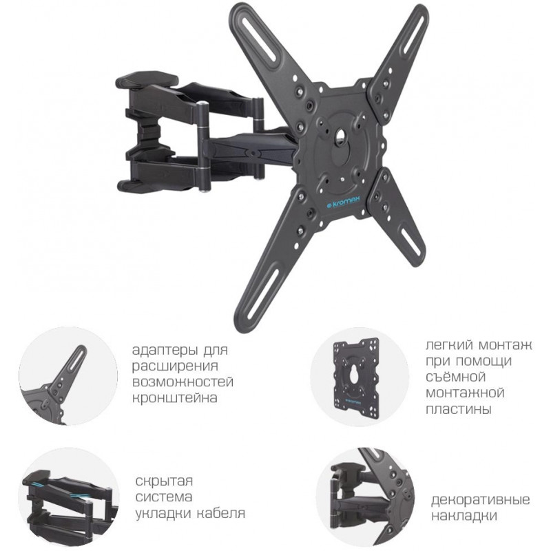 Кронштейн для телевизора Kromax ATLANTIS-45 темно-серый 22"-65" макс.45кг настенный поворот и наклон