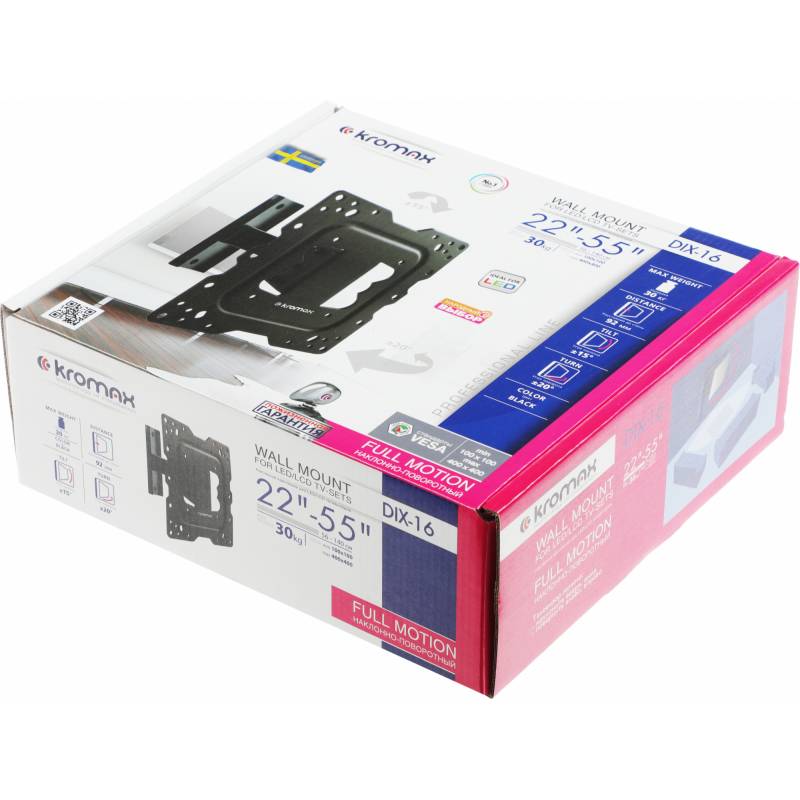 Кронштейн для телевизора Kromax DIX-16 черный 22"-55" макс.30кг настенный поворот и наклон