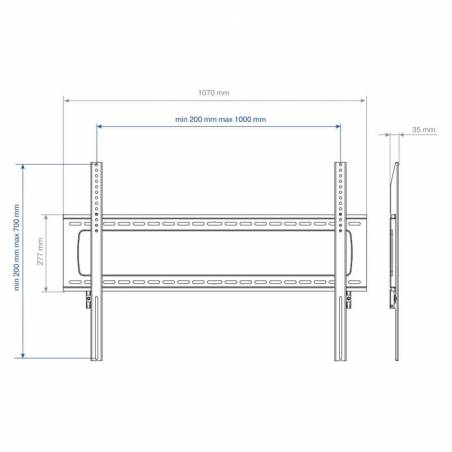 - Универсальная система крепления по горизонтали от 200 мм до 1000 мм, по вертикали от 200 мм до 700 мм. Широкое настенное основание с увеличенными размерами, для равномерно распределение нагрузки на кронштейн. Простая установка с помощью водяного уровня.