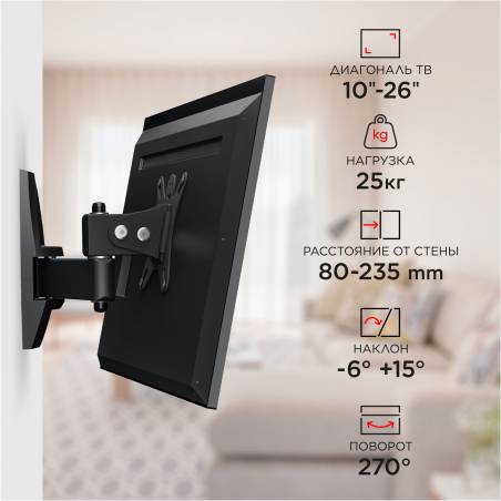 Кронштейн для телевизора Holder LCDS-5004 металлик 10"-26" макс.25кг настенный поворот и наклон