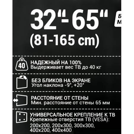 Кронштейн для телевизора Holder LCD-T4612 черный 32"-65" макс.40кг настенный наклон