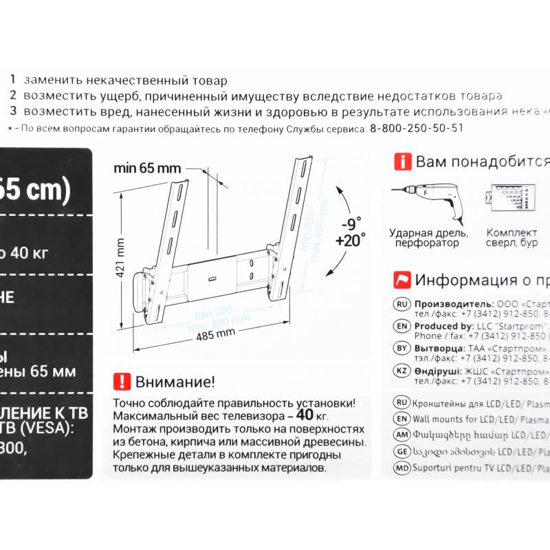 - Расстояние от стены/потолка (макс)