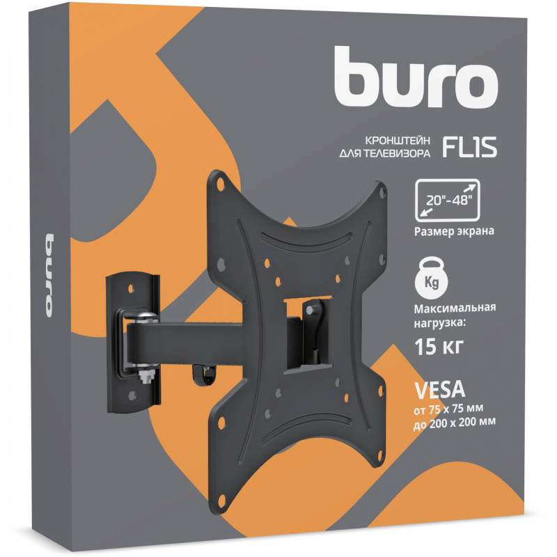 Кронштейн для телевизора Buro FL1S черный 20"-48" макс.15кг настенный поворот и наклон