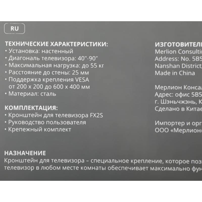 Кронштейн для телевизора Buro FX2S черный 40"-90" макс.55кг настенный фиксированный