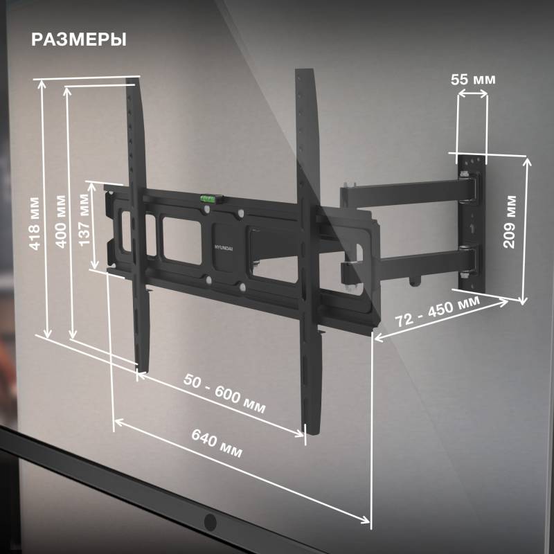Кронштейн для телевизора Hyundai GL-N4 черный 32"-75" макс.40кг настенный поворотно-выдвижной и наклонный
