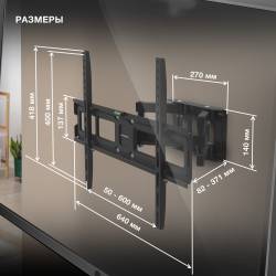 Кронштейн для телевизора Hyundai GL-N5 черный 32"-75" макс.40кг настенный поворотно-выдвижной и наклонный