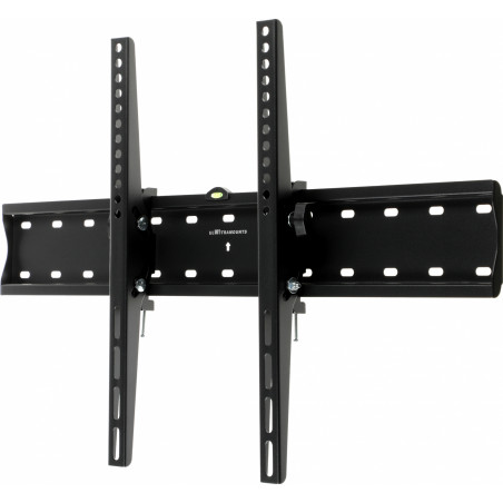- Встроенный водяной уровень позволяет ровно установить крепление. Простая и быстрая установка. Конструкция кронштейна предусматривает возможность вентиляции телевизора и обеспечивает доступ к телевизионным проводам. Регулируется угол наклона и подъема.