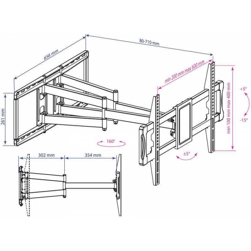 Кронштейн для телевизора Kromax ATLANTIS-70 черный 32"-75" макс.101кг настенный поворотно-выдвижной и наклонный