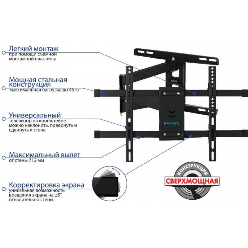 Кронштейн для телевизора Kromax DIX-20 черный 22"-65" макс.45кг настенный поворотно-выдвижной и наклонный