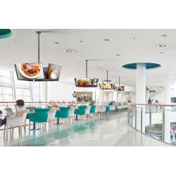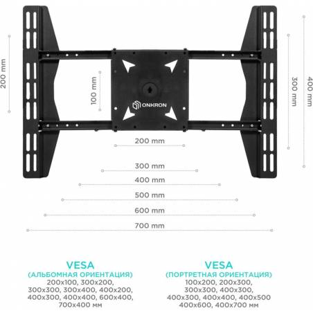 - Различные варианты крепления VESA. Регулируемый вылет от потолка. Регулировка вылета VESA-панели. Альбомная и портретная ориентация. Широкие возможности регулировки.