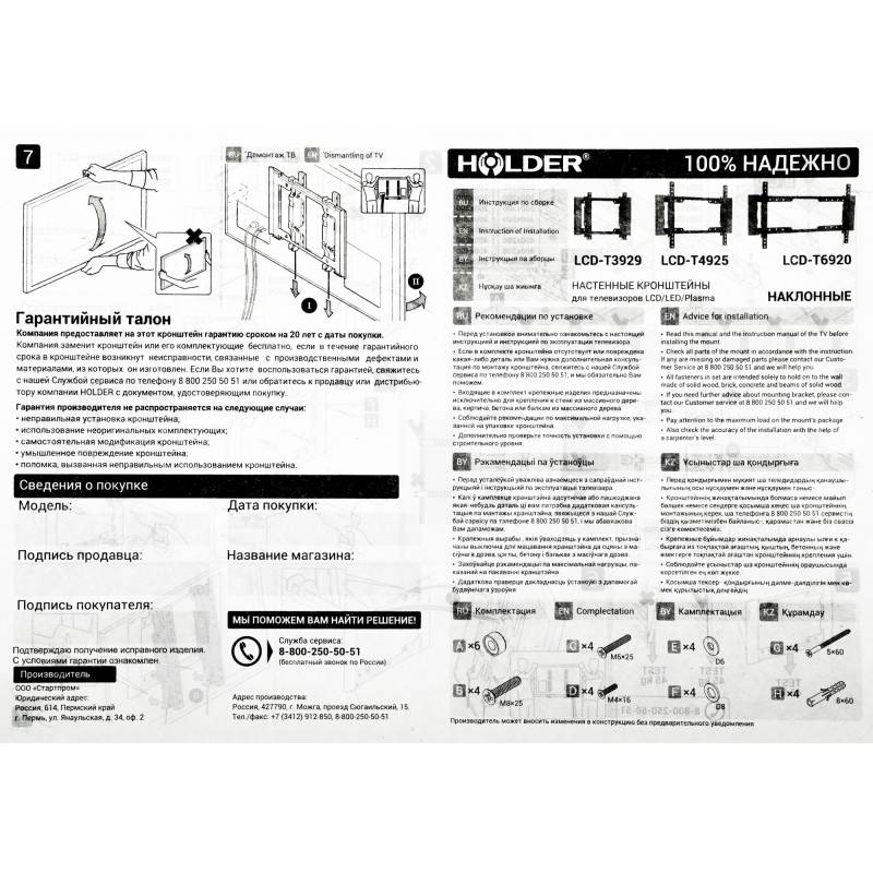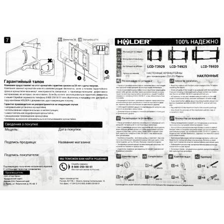 Кронштейн для телевизора Holder T4925-B черный 26"-55" макс.45кг настенный наклон