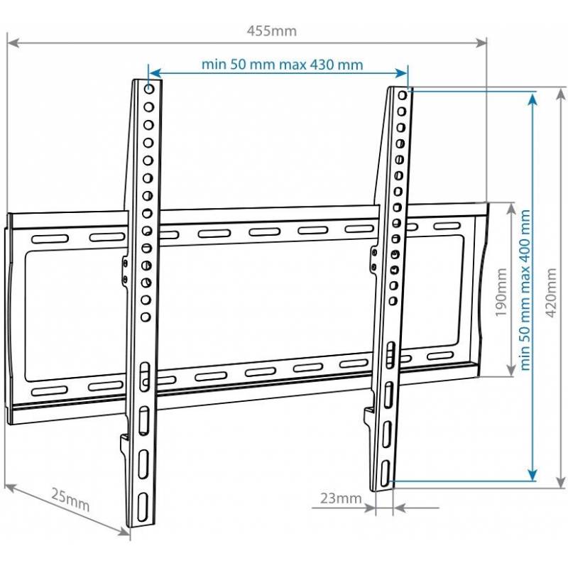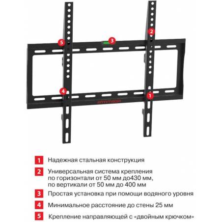 - Кронштейн arm media STEEL-3, для LED/LCD/PLASMA телевизоров 22" - 65", max 50 кг, настенный, 0 степеней свободы, от стены 25 мм, max VESA 400x400 мм, крепление направляющей с "двойным крючком"