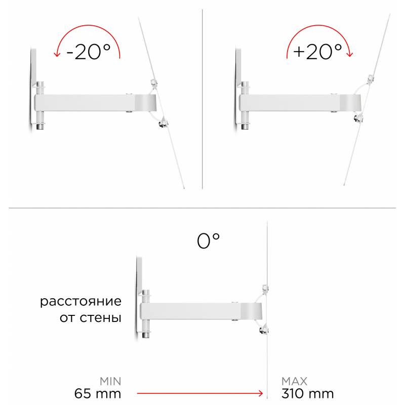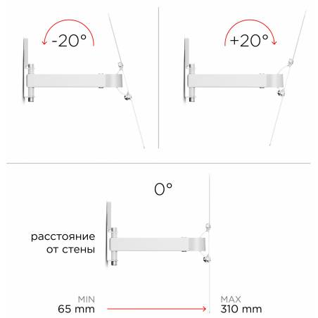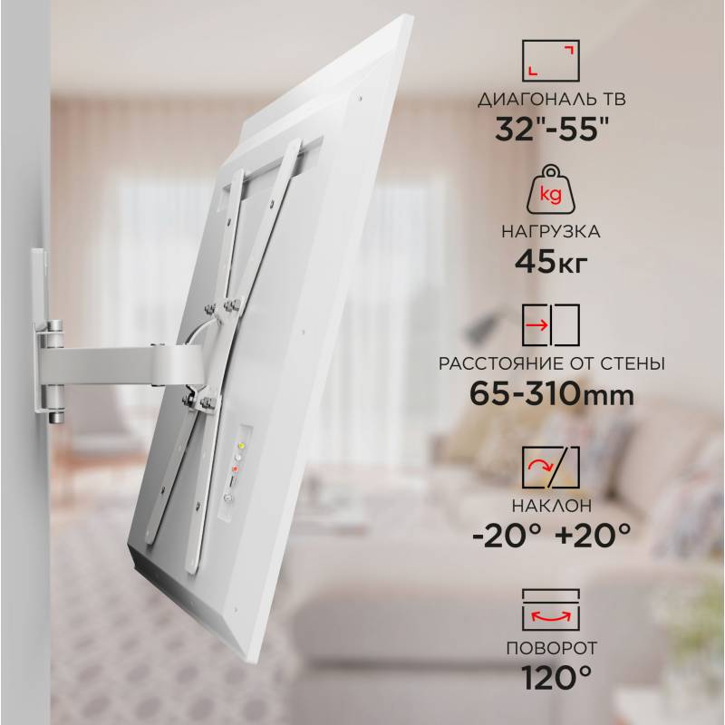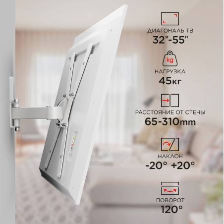 Кронштейн для телевизора Holder LCD-5520-B белый 32"-55" макс.45кг настенный поворотно-выдвижной и наклонный