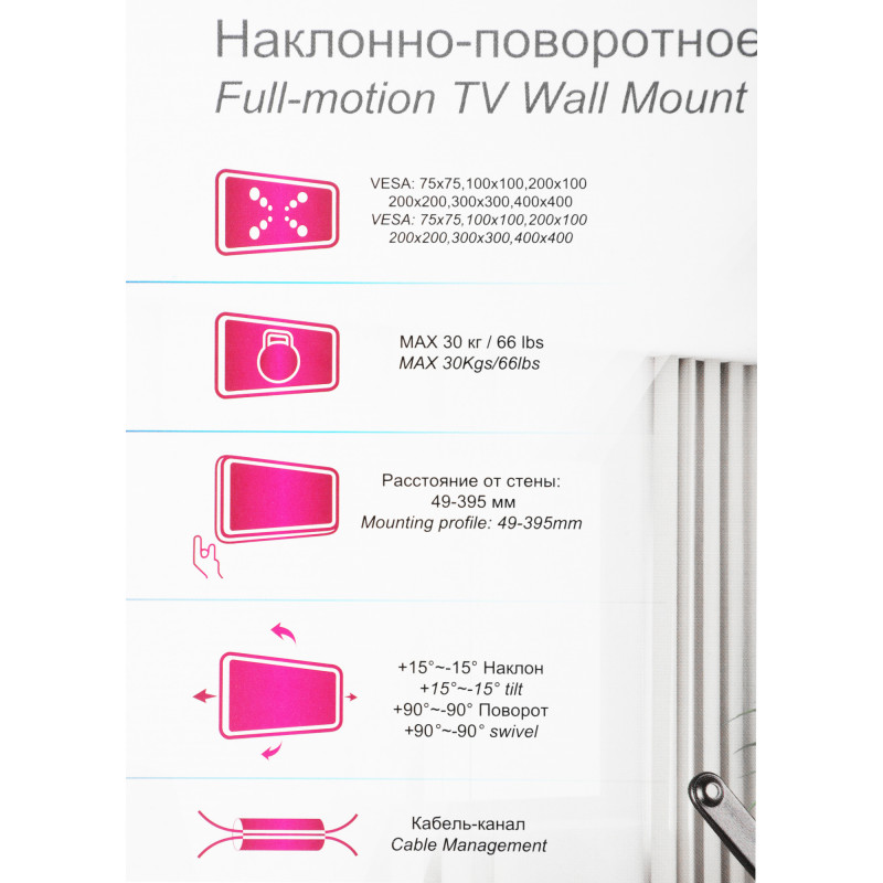 Кронштейн для телевизора Ultramounts UM905 черный 23"-55" макс.30кг настенный поворотно-выдвижной и наклонный