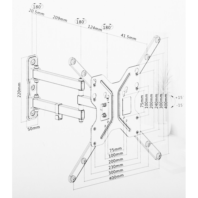 - Расстояние от стены/потолка (макс)